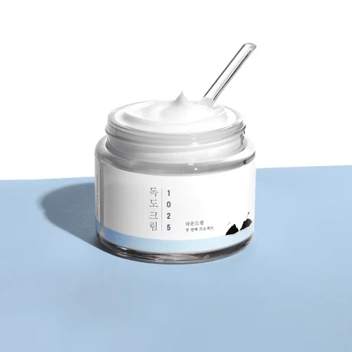 La Round Lab 1025 Dokdo Cream de 80 ml es una crema facial intensamente hidratante, enriquecida con agua de mar rica en minerales y ceramidas, diseñada para calmar y fortalecer la barrera cutánea, siendo ideal para pieles secas y sensibles.