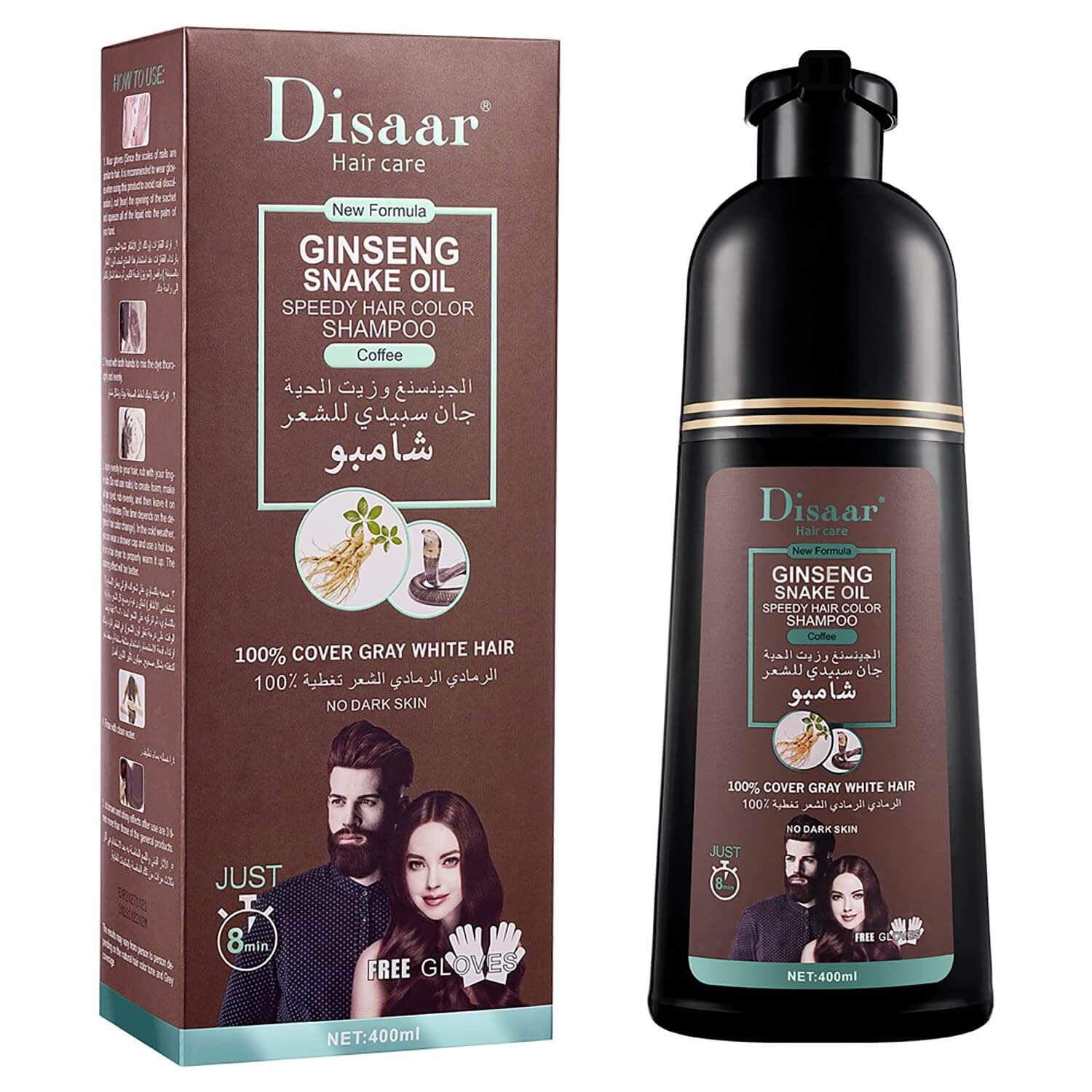 El champú tinte Disaar Coffee es un producto diseñado para teñir el cabello instantáneamente, especialmente para cubrir las canas. Su fórmula está enriquecida con ingredientes como el aceite de argán para nutrir y fortalecer el cabello mientras se aplica el color.