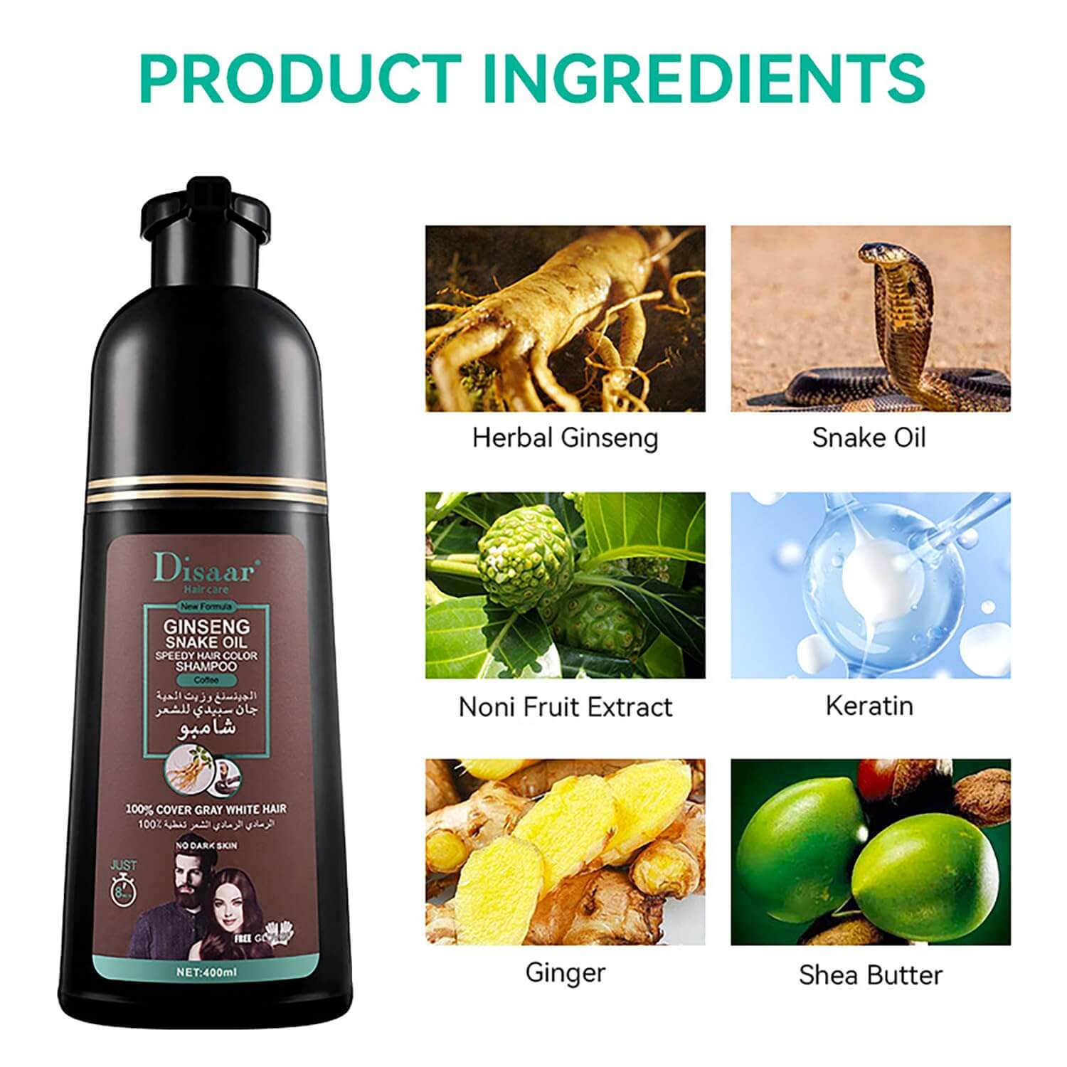 • Extracto de ginseng: Ayuda al crecimiento y fortalecimiento capilar.