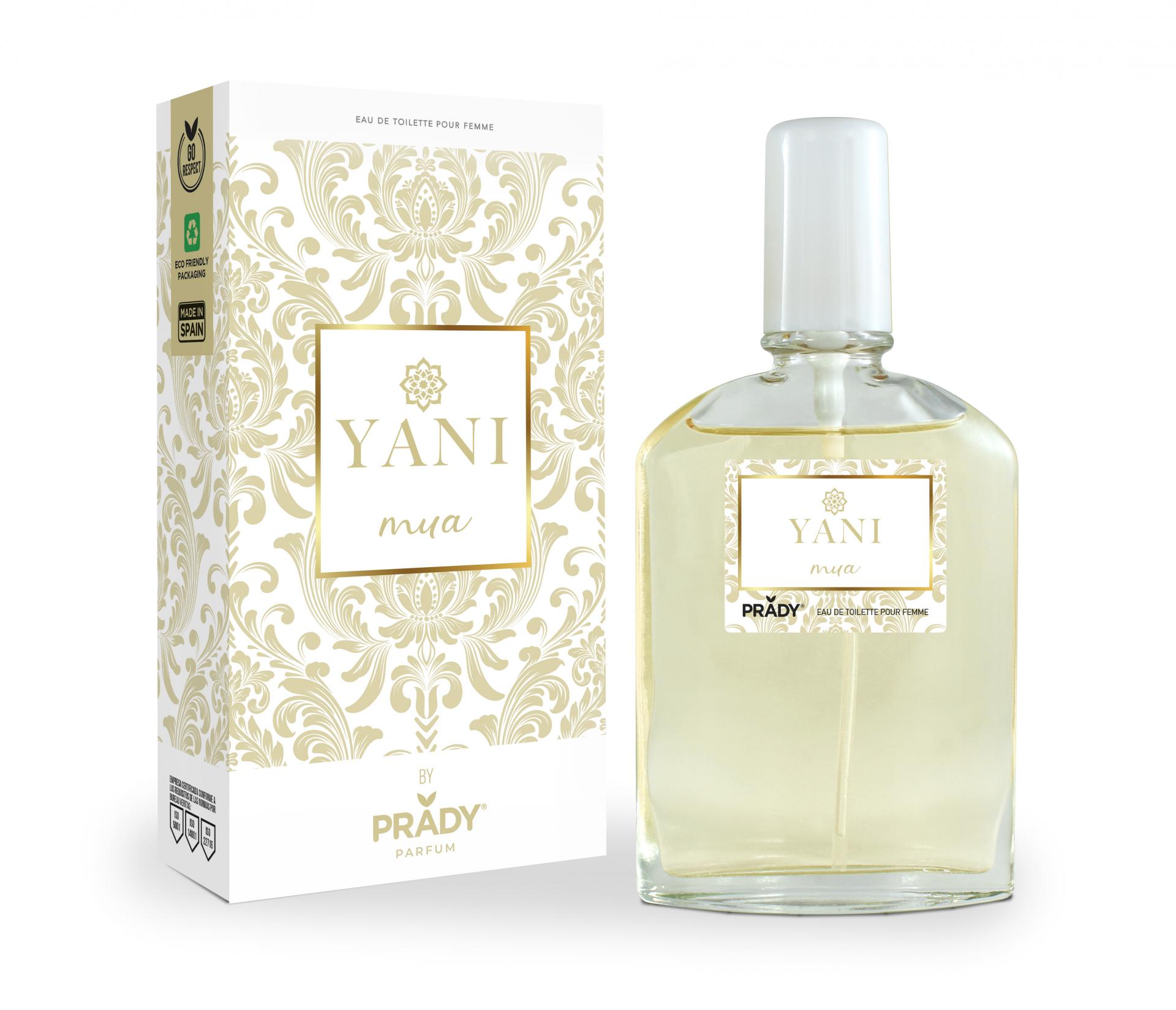 La fragancia Yani Mua de Prady es descrita como una fragancia dulce, cálida y envolvente.